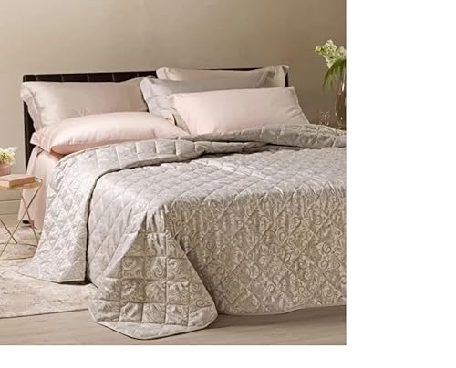 Caleffi Trapuntino Copriletto trapuntato matrimoniale due piazze modello Astoria variante beige raso jacquard