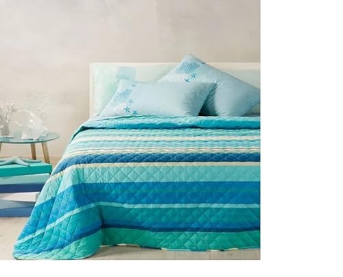 Caleffi Trapuntino Copriletto trapuntato matrimoniale due piazze modello Ibiza cotone oceano