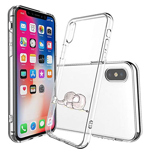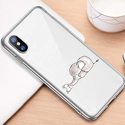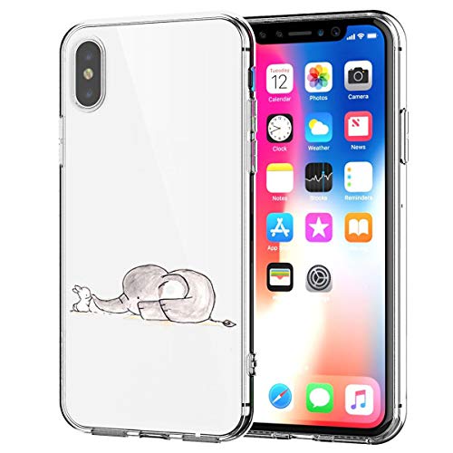 Caler Cover Compatibile con iPhone X Silicone, Custodia Originale Arancione Trasparente Animali Disegni Gel Morbido Marmo 3D Rigido Sottile Ultra Slim TPU (Elefante Coniglio)
