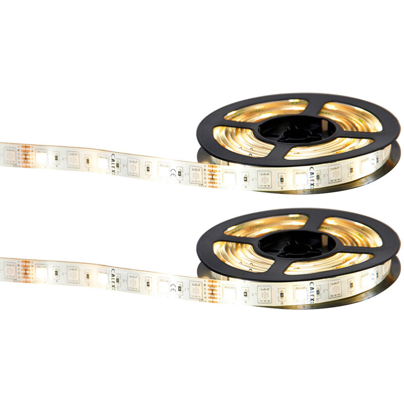 Calex Set di 2 strisce LED intelligenti RGBW e dimmerabili in Kelvin 2 m incluso driver Hai sempre desiderato avere delle belle strisce LED nel tuo mobile a muro, ad esempio? Allora questa è la tua occasione! Questo set di 2 strisce LED intelligenti RGBW può essere regolato nel colore perché è intelligente. Puoi farlo facilmente nell'app sul tuo smartphone, tablet o assistente domestico. La striscia può anche essere regolata in temperatura colore (Kelvin). È lunga 200 cm ed è realizzata in plastica. Puoi sempre tagliare la striscia LED alla lunghezza desiderata tagliando l'estremità. Questo la rende sempre perfetta per i tuoi interni. Crea più atmosfera con questo set di 2 strisce LED intelligenti! Portalampada: (non sostituibile) LED . Max 1 x 6.8 W, 230 V Adatto a: LED Voltaggio: 12V IP Classe di protezione: [IP20] A prova di polvere Funzioni extra: Regolabile: Dimmer incluso,Sì, con cavo e spina Lampadine inclusiva Il Calex Set di 2 strisce LED intelligenti RGBW e dimmerabili in