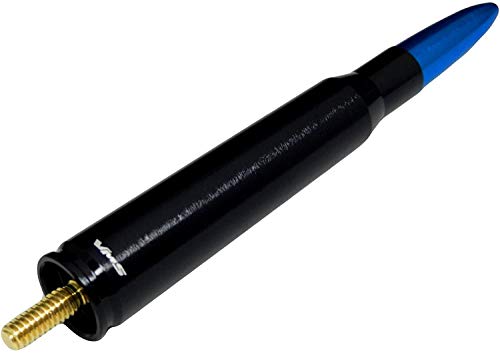 50 Cal Caliber BLACK BLUE TIP BULLET ANTENNA in Heavy Gauge Billet Aluminum Stubby Short for Ford F150 F-150 Raptor King Ranch Lariat Platinum XL XLT FX2 FX4 STX SVT Tremor Standard Crew Extended Cab Pickup 2 door 4 door 12 13 14 15 2012 2013 2014 2015