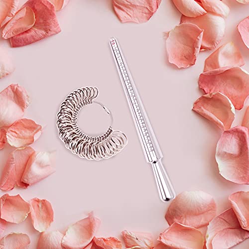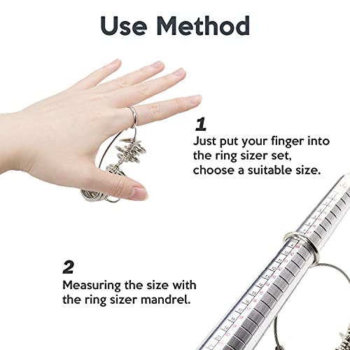 Facile da Leggere e Misurare: Il misuratore dell'anello e l'asta dell'anello hanno una scala chiara, che è comoda da leggere e utilizzare, inoltre, ci sono taglie intere e mezze misure per riferimento