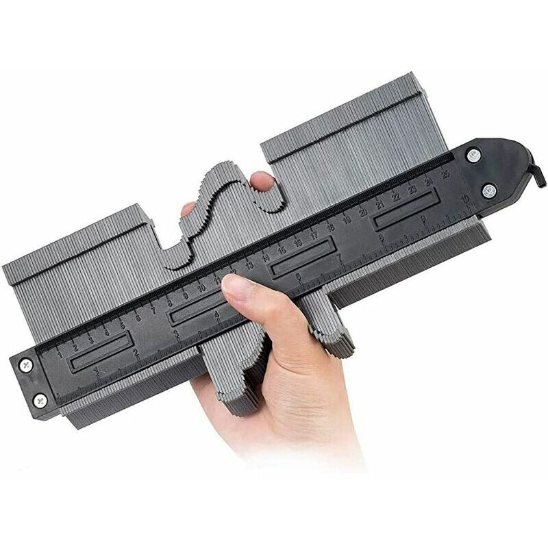 Materiale: realizzato in plastica ABS resistente e durevole, leggero, robusto e ben costruito. Funziona bene nella catalogazione delle tradizionali forme di modanature in legno. Dimensioni: profilo di contorno multifunzione di 25 cm di diametro, disponibile sia in pollici che in centimetri. Misura su entrambi i lati, ed entrambi i lati sono disponibili. Semplice da usare: basta premere i denti degli spilli su una forma e tracciare. Se i perni sono troppo allentati, puoi semplicemente usare delle pinze per premere le estremità del tappo in ottone per ripristinare un po' di tenuta. Conveniente e consente di risparmiare tempo ed energia. Strumento pratico: strumenti utili per eseguire tutti i tipi di modellazione. Il movimento dei perni è molto flessibile, il che facilita la misurazione e il taglio. Un ottimo strumento per eliminare le congetture. Ampia applicazione: questo misuratore di contorni è adatto per misurare molti oggetti irregolari, tubi di avvolgimento, lamiere, telai