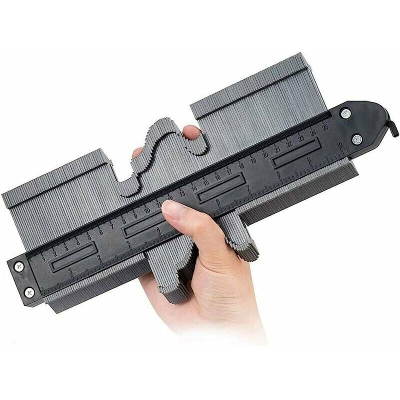 Materiale: realizzato in plastica ABS resistente e durevole, leggero, robusto e ben costruito. Funziona bene nella catalogazione delle tradizionali forme di modanatura del legno. Dimensioni: profilo di contorno multifunzione di 25 cm di diametro, disponibile sia in pollici che in centimetri. Sono disponibili le dimensioni su entrambi i lati e su entrambi i lati. Semplice da usare: basta premere i denti degli spilli su una forma e tracciare. Se i perni sono troppo allentati, puoi semplicemente usare una pinza per premere le estremità del tappo di ottone per ripristinare un po' di tenuta. Comodo e consente di risparmiare tempo ed energia. Strumento pratico: strumenti utili per eseguire tutti i tipi di modellazione. Il movimento dei perni è davvero flessibile, il che facilita la misurazione e il taglio. Un ottimo strumento per eliminare le congetture. Ampia applicazione: questo misuratore di contorno è adatto per misurare molti oggetti irregolari, tubi di avvolgimento, lamiere, telai