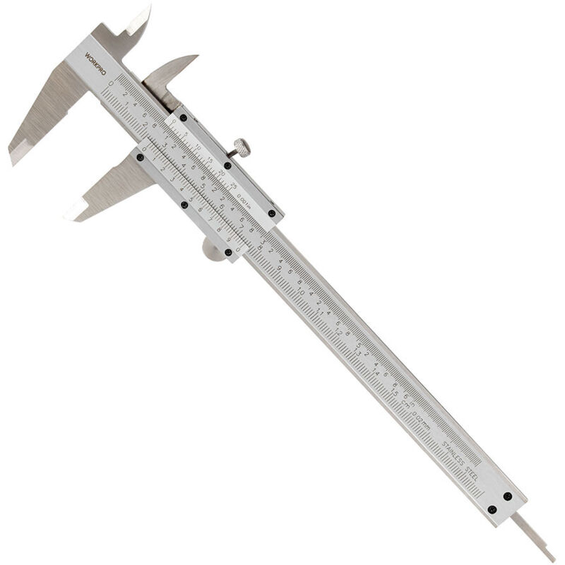 Calibro a corsoio de 150mm/6 workpro. corpo de in lega de leggero alluminio anodizzato dede di alta qualità. graduazioni in 1/8'', 1/16''. (metrico/sae)