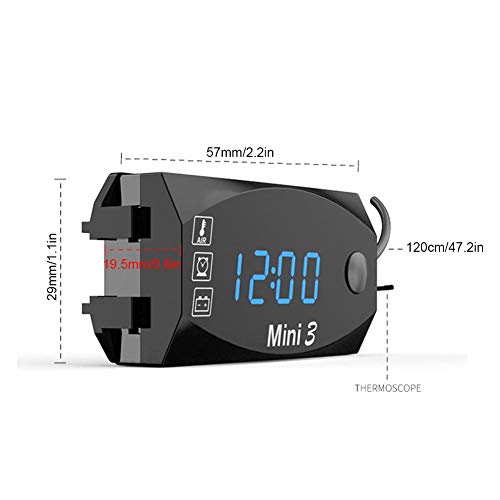 3 in 1: voltmetro per motocicletta, orologio, temperatura display digitale tre in uno, tensione di visualizzazione, tempo e temperatura in qualsiasi momento.