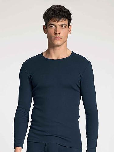 Classica canottiera da uomo con scollo rotondo e maniche lunghe, in qualità a costine fini particolarmente morbida