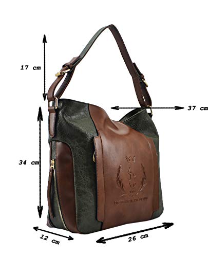 California Polo Club Alice - Borsa a tracolla da donna, Multicolore (Haki/Taba), Medium