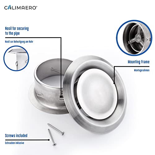 La valvola a disco Calimaero TVE può essere utilizzata come valvola di scarico e di aspirazione. La griglia di ventilazione viene fornita con telaio di montaggio e viti. Un mandrino filettato garantisce una regolazione continua del flusso di volume a seconda delle necessità. La valvola a disco in acciaio inox spazzolato di alta qualità è particolarmente adatta per ambienti con elevata umidità. È robusto e resistente alla corrosione.