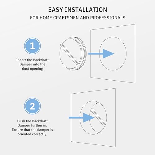 FUNZIONE La valvola di non ritorno viene spinta completamente nel tubo dell condotta aria. Perfetto per il retrofit di aspiratore bagno e sistemi di ventilazione senza aspiratore valvola non ritorno. Le alette in gomma devono essere allineate in modo che si aprano con il flusso dell'aria di scarico. L'anello di gomma esterno garantisce una perfetta tenuta e una presa sicura.