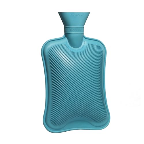 CALINDOO - Borsa dell'acqua calda in gomma naturale - stampo senza saldatura - tappo ermetico - efficacia a lunga durata - 2L - Blu pastello