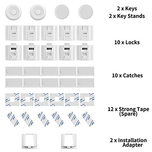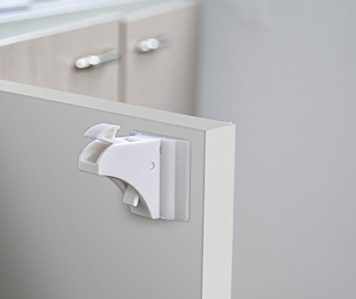 CALISH - Set di ferma-cassetti di sicurezza per bambini, sistema magnetico/adesivo, montaggio senza trapano, bianco