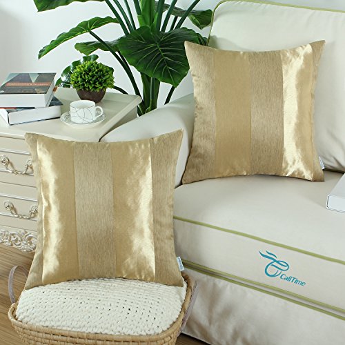 CaliTime Copricuscini e federe Confezione da 2 Fodere per Cuscino Copri Cuscini Fodere per Panca Divano Home Decor, Strisce Moderne, 50cm x 50cm, Oro