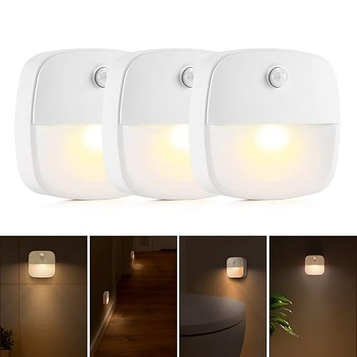 CALIYO Luce notturna a LED con sensore di movimento, 3 pezzi, luce notturna per bambini, sensore di movimento, luce per interni, luce notturna, luce per corridoio, bagno, camera da letto, luce di