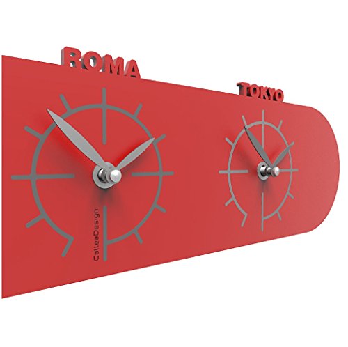 CalleaDesign - Orologio da Parete Singapore con fusi orari, Colore: Rosso Fuoco