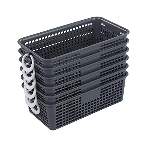 Callyne Confezione da 6 piccoli cestini portaoggetti in plastica, piccolo cesto portaoggetti da cucina con manico, grigio