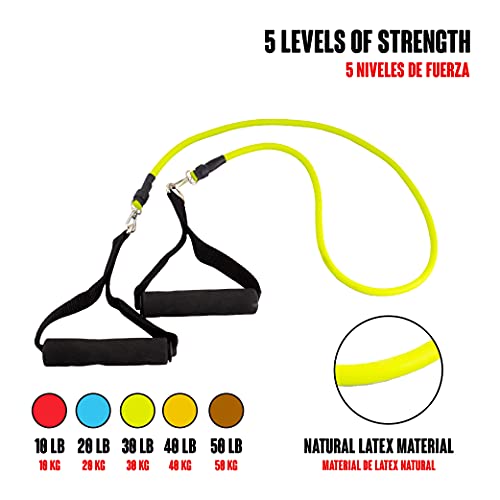 Calma Dragon Elastic Resistance Bands, Bodybuilding Set, 5 Tubi in Lattice, con Borsa Inclusa, con Maniglie, Cinturini per Caviglie e Ancoraggio Porta, Corde per Il Fitness, Yoga