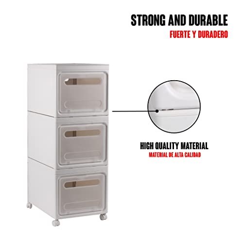 Calma Dragon Scatole impilabili con coperchi 3 cassetti in plastica Organizzatori Scaffali con ruote Mobili flessibili Punte arrotondate Scatola salvaspazio Dimensioni 38x38x25 Totale 38x38x75