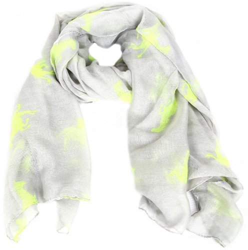 Calonice Amorino Sciarpa da donna color stampa con cavalli Equestre 100% Poliestere 100x180cm (LxH) 21003 (giallo grigio)