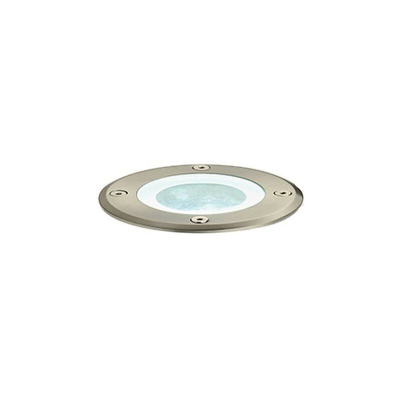 Struttura in pressofusione di alluminio. Anello di copertura in acciao inox. Diffusore in vetro trasparente infrangibile: max 500kg. Parabola riflettente in alluminio. Controscatola in termoplastico. Guarnizione siliconica e accessori per il fissaggio. Pressacavo PG11. Portalampada in porcellana con attacco GU10. Altezza lampada: max 65mm. Adatto esclusivamente per lampade a risparmio energergetico. Lampada esclusa. Alimentazione 230V ~ 50Hz. Classe di protezione: IP65 Potenza massima lampade: 11W