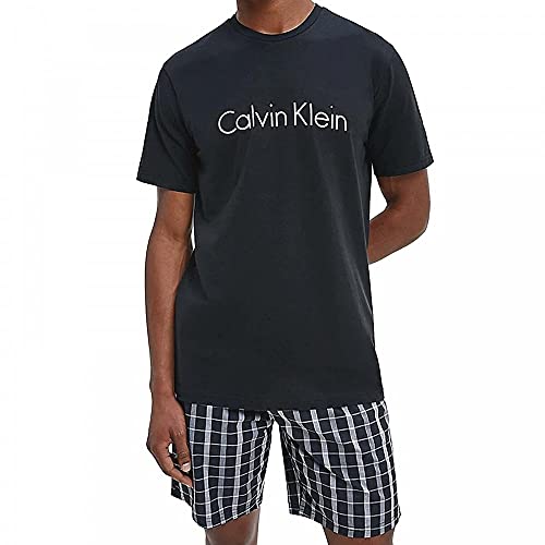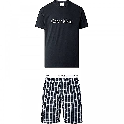 Calvin Klein S/S Set Corto Pigiama, Black Top/Pierce Plaid Bottom, M (Pacco da 2) Uomo