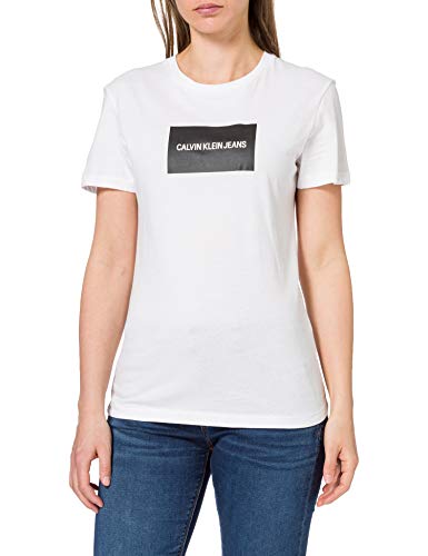 Calvin Klein Institutional Box Slim Fit Tee T-Shirt, Bianco Brillante/Nero CK, Medium Donna