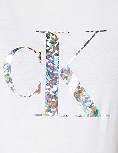 Calvin Klein Iridescent Metallic Logo Tee Camicia, Bright White, X-Small Donna