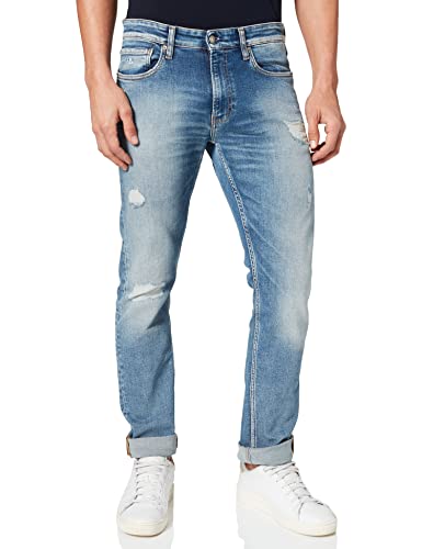 Calvin Klein Ckj 026 Slim Jeans, Carnum Blue Dstr Monogram Patch, 29W / 34L Uomo