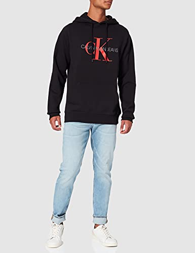 Calvin Klein Jeans Felpa con Cappuccio Regular con monogramma stagionale, CK Black/Salsa, S Uomo