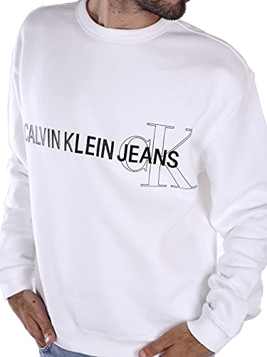 Calvin Klein Jeans Instit Stagionale Logo Girocollo Maglia di Tuta, Bright White, XL Uomo