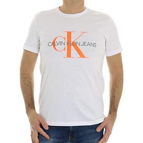 Calvin Klein Jeans Maglietta con monogramma stagionale 2 T-Shirt, Bright White/Neon, XL Uomo