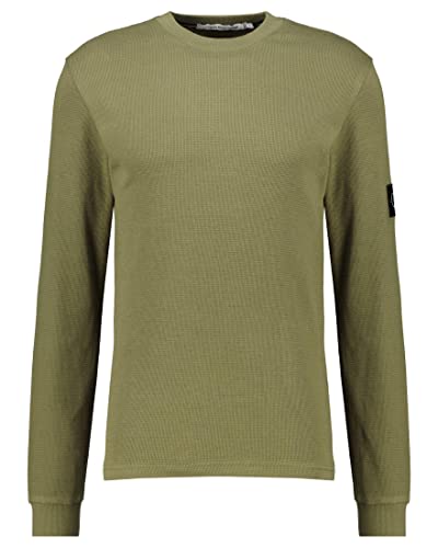 Calvin Klein Jeans - Maglietta da uomo con toppa monogramma con logo Waffle Ls Tee, cachi, S