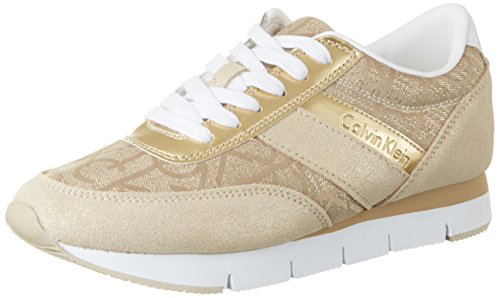 Calvin Klein Jeans Tea Metallic Jacquard/Suede, Scarpe da Ginnastica Basse Donna, Oro (Gold), 38 EU