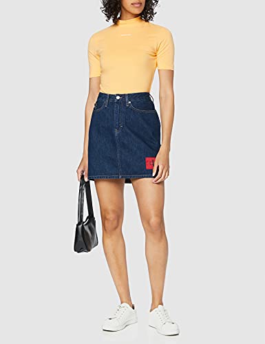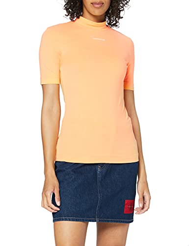 Calvin Klein Jeans Micro Branding Stretch Mock Neck T-Shirt, Crushed Orange, XS Donna