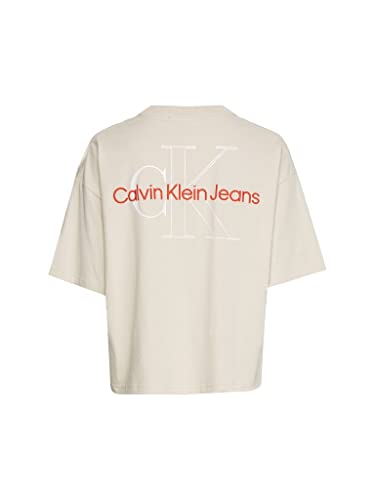 Calvin Klein Jeans Two Tone Monogram Loose Tee T-Shirt, Eggshell, M Donna