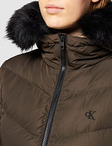 Calvin Klein Jeans Piumino Lungo Aderente, Black Olive, L Donna