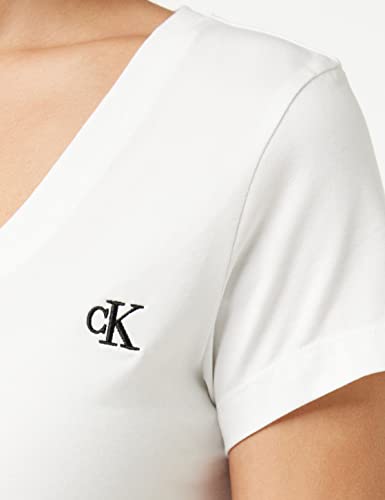 Calvin Klein Jeans T-shirt Maniche Corte Donna Ck Embroidery Scollo a V, Bianco (Bright White), M
