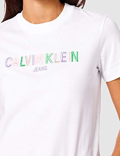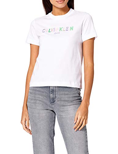 Calvin Klein Jeans T-Shirt con Logo Multicolore Collare di Diffusione, Bright White, S Donna