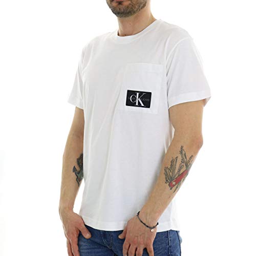 Calvin Klein Mixed Media Nylon Pocket Tee T-Shirt, Bright White, Large Uomo