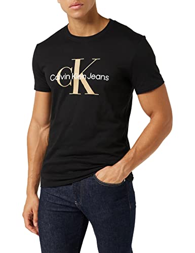 Calvin Klein Seasonal Monologo Tee T-Shirt, Nero (CK Black/Timeless Camel), S Uomo
