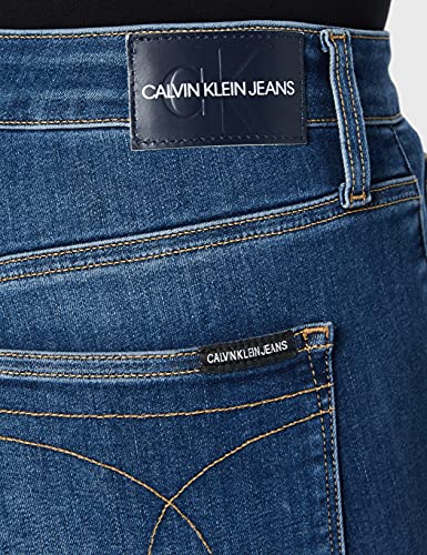 Calvin Klein High Rise Super Skinny Ankle Jeans, Mid Blue Dstr Front Hem, 31W Short Donna