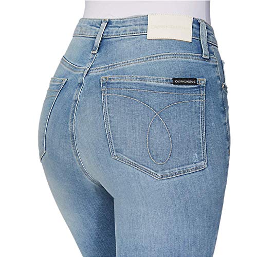 Calvin Klein High Rise Super Skinny Ankle Jeans, Light Blue Dstr Cut Hem, 33W Short Donna