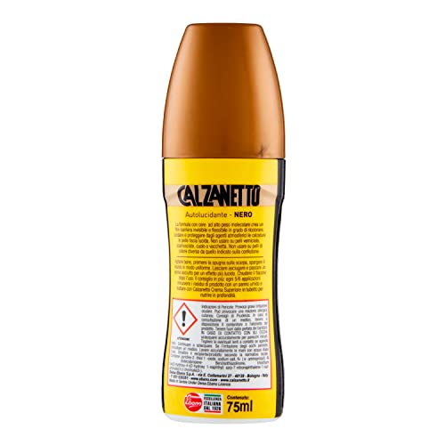 Calzanetto, AUTOLUCIDANTE per SCARPE in PELLE LUCIDA è un flacone con miscela di soluzione a base cerosa e resinosa ideale per lucidare la pelle delle scarpe. Calzanetto, AUTOLUCIDANTE per SCARPE in PELLE LUCIDA è disponibile nelle colorazioni Neutro, Nero, Marrone, Testa di Moro e Bianco Coprente.