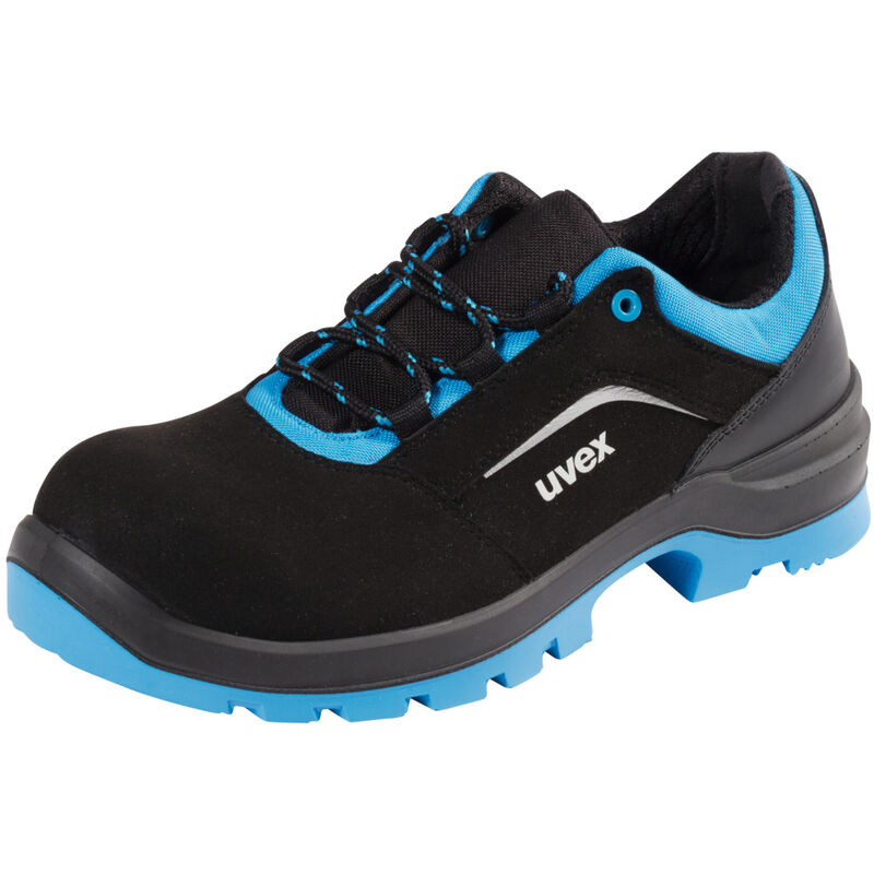 Scarpa di sicurezza sportiva e leggera con buone proprietà di ammortizzazione per garantire un comfort elevato. Calzata 11. * Suola esterna in poliuretano bidensità di colore blu con ottime proprietà antiscivolo. * Puntale protettivo in plastica, forma anatomica e con buona stabilità laterale. * Collarino imbottito. * Caratteristiche ESD. * Comodo plantare con sistema per il trasporto dell'umidità e sistema di ammortizzazione nella zona di tallone e avampiede. Tomaia in microvelluto traspirante. Norma: EN ISO 20345:2011 S2 SRC Einlagenversorgung baumustergeprüft nach DGUV Regel 191. Dati tecnici Proprietà elettrostatiche EGB/ESD Tipo di prodotto Calzatura bassa di sicurezza Genere da uomo Norma Fornitura di inserti omologati a norma DGUV 191 Grado di protezione S2 Numero di scarpa UE 46 Materiale puntale protettivo Composito