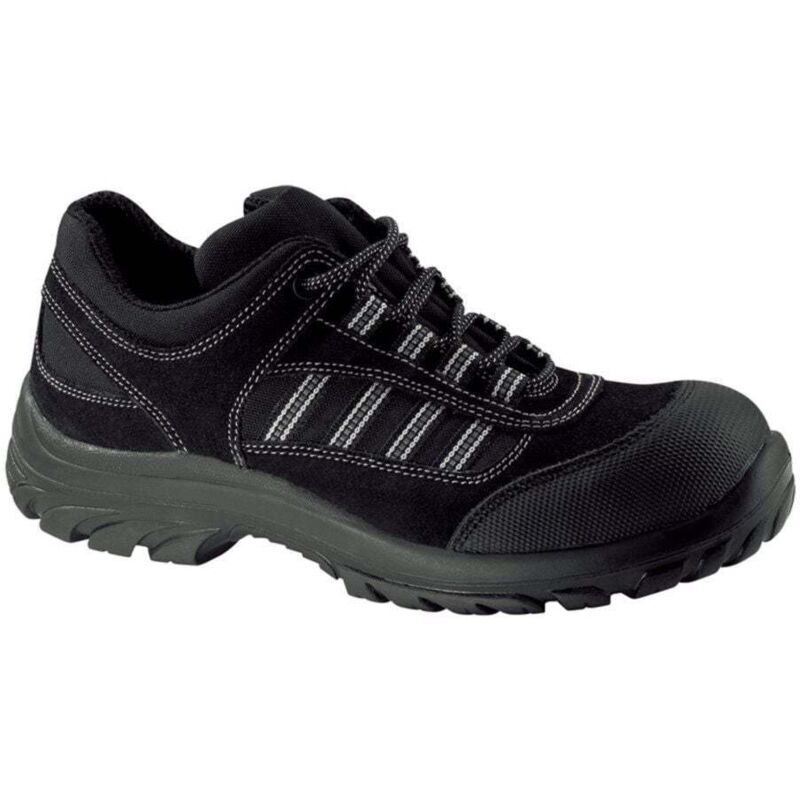 Calotta in policarbonato resistente a 200 joule Calzature Resistenza Elettrica-Antistatiche Assorbimento di energia attraverso il tallone Resistenza della suola agli idrocarburi Resistenza della suola alla perforazione Resistenza della tomaia alla penetrazione e all'assorbimento dell'acqua Suola antiscivolo SRC Scarpe 100% non metalliche Caratteristiche: Peso per paio taglia 42: 1250 g Stelo: Crosta di pelle idrorepellente con finitura in velluto nero con inserti in tessuto e bande retroriflettenti Chiusura: passanti in tessuto retroriflettenti Fodera quarto: tessuto microaerato tridimensionale altamente traspirante Fodera avampiede: sintetico Vestibilità: Natur'form (grande) Raccordo: California Sottopiede: tessuto Sottopiede: schiuma e tessuto Composizione: Crosta di pelle idrorepellente con finitura in velluto nero Sintetico Protezioni: Puntale: policarbonato (200 joule) Inserto antiperforazione: tessuto composito ad alta densità penetrazione 0 (1100 Newton) Standard: EN ISO 20345