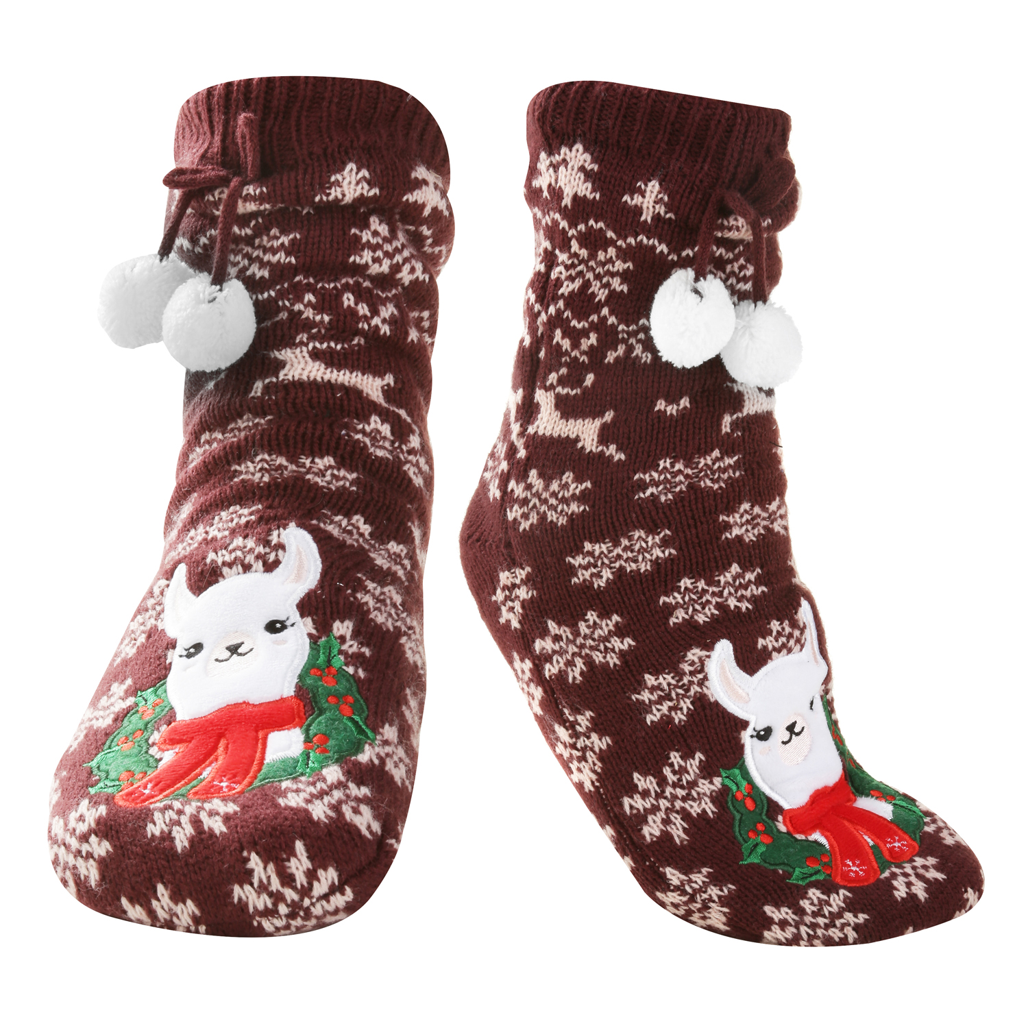 Calde calze antiscivolo da donna con tessuto a maglia decorato con lama tridimensionale, pon pon e suola antiscivolo. Morbide e confortevoli mantengono i piedi caldi durante le giornate più fredde e sono ideali anche da regalare a parenti o amiche. Elasticizzate, a collo alto e taglia unica, si adattano a qualsiasi calzata. Lavabili in lavatrice a 30° senza centrifuga, si consiglia di non asciugare in tamburo e non stirare.
