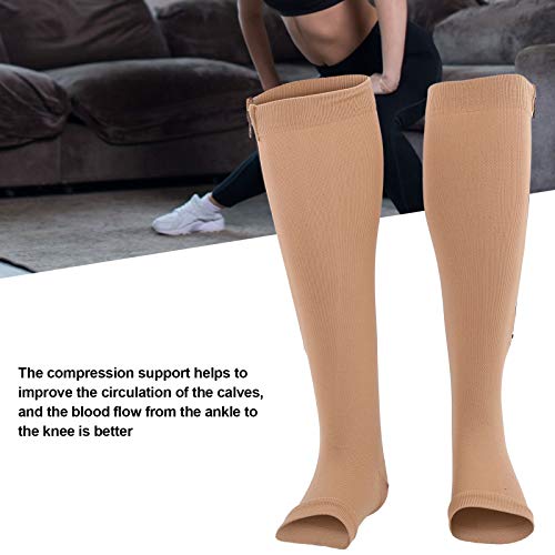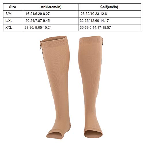 Calze a Compressione con Cerniera,1 Calze a Compressione Elastiche Sportive Aperte in Punta Maniche Protettive per Piedi Antiscivolo con Cerniera(XXL)