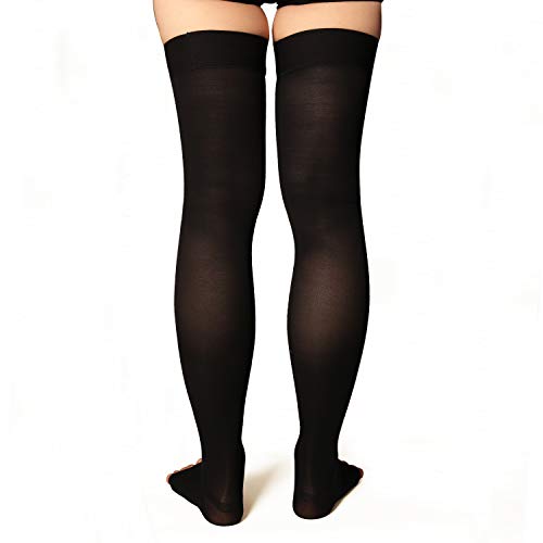 +MD Calze a compressione ad alta gradazione della coscia Open-Toe 23-32mmHg Calze per supporto medico per vene varicose, edema, vene ragno sottili NeroM