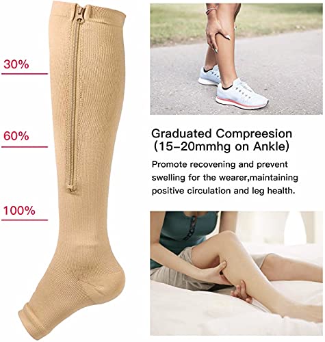 IDEALE PER I DOLORI AI PIEDI E ALLE GAMBE: queste calze a compressione aperte al ginocchio. Realizzato in una miscela di 35% Spandex e 65% Nylon, per dare un materiale leggero, traspirante, assorbente dal sudore e antiscivolo e per garantire un'esperienza di indossamento confortevole. Sono inclusi entrambi i colori nero e beige.