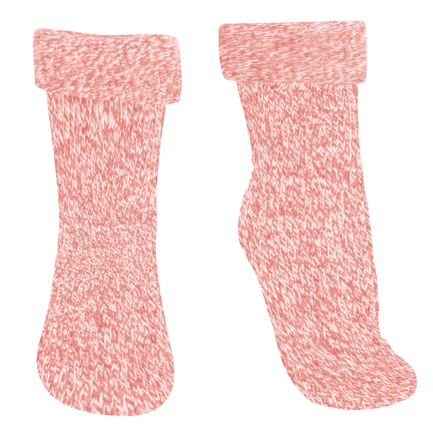 In inverno mantieni i tuoi piedi al caldo con questo bel paio di calzettoni colorati! La trama in 50% lana, 30% poliammide e 20% poliestere crea un effetto avvolgente e ricco di calore. Sono perfette da indossare in casa anche senza ciabatte perchè sono dotate di gommini antiscivolo. Queste morbide calze da donna sono caratterizzate da un bellissimo effetto melange sui toni del rosa: perfette da regalare a Natale e in inverno a mamme, amiche, fidanzate e colleghe particolarmente freddolose! La taglia veste dalla 39 alla 42 e puoi comodamente risvoltarle sulla caviglia. Lavabili in lavatrice a 30°.